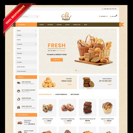 Satisfy your sweet tooth with our Sweet Bakery Shop Prestashop Theme! Create an irresistible online bakery store with ease. Perfect for selling cakes, pastries, and more.
